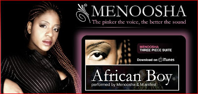 “Born and growing up in Abidjan (Ivory Coast),……Menoosha was exposed from an early age, to hot afro beat sounds, as well as contemporary R&B, rock and soul vibrations. She can boast about having been one of the kids who were allowed to stay up late… to sing on stage. With a child choir “Les Oiseaux du Monde” (Birds of the world), she opens for Kool & the Gang and Stevie Wonder in 1988.”