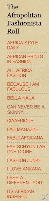 And for your fashionable viewing pleasure…Check out the blogs on the Afropolitan Fashionista Roll!