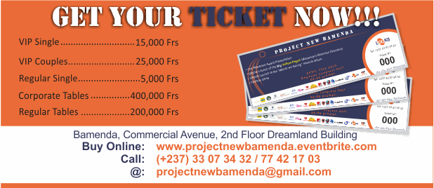 We are very thankful to Looks, Jing & Partners, MTN Cameroon, Ndawara Highlands Tea Cameroon, BGFI Bank Cameroon, Saddle Hill Ranch, Blue Pearl Hotel, Essoka Security, Imagine, WHITE House Restaurant, Kibonen|NY and Cameroon Fashion CIG for being such wonderful backers. Together, we are giving life to the concept of the “New Bamenda” and more, we are giving hope to a Region that deserves the best.For more info