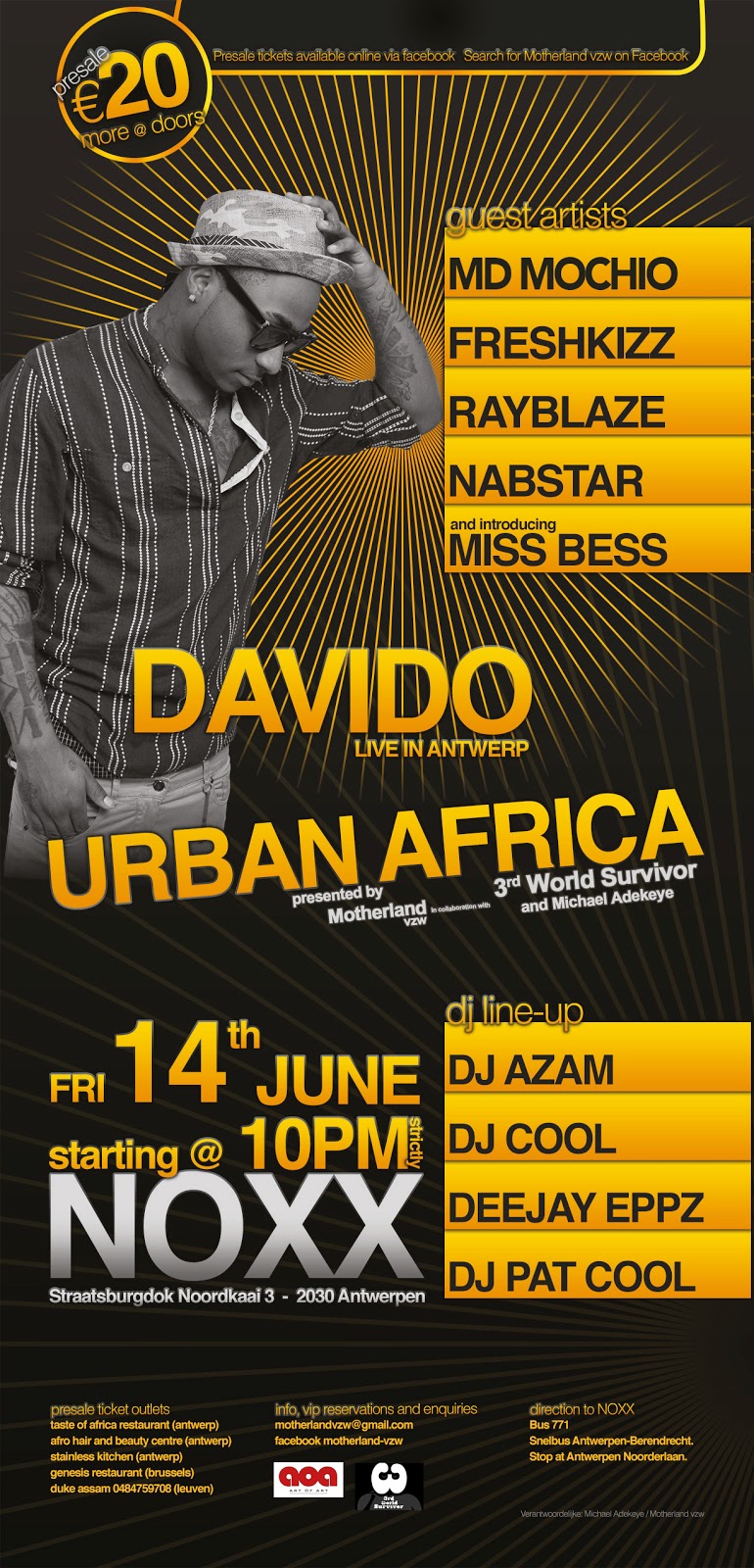 “Urban Africa” is a collaboration project between Motherland VZW, Michael Adekeye and 3rd World Survivor – Nabil’s record label which he co owns with his brother Rahul Fongod. The Cameroon born artist is looking forward to performing at the event and he adds “the show is going to be crazy so if you are in Antwerp on Friday, Noxx will be the only place to be!”