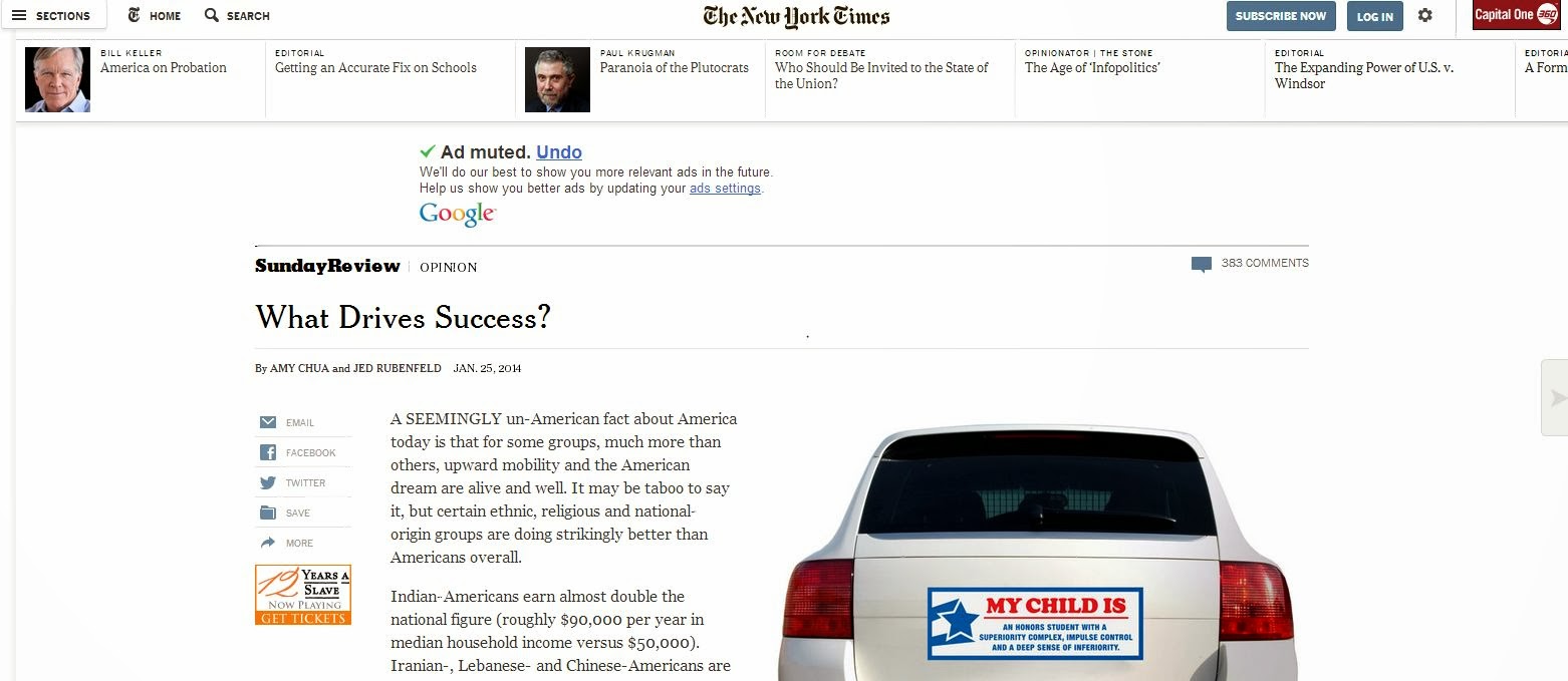 Interesting Article on NY Times Sunday Review…”What Drives Success”