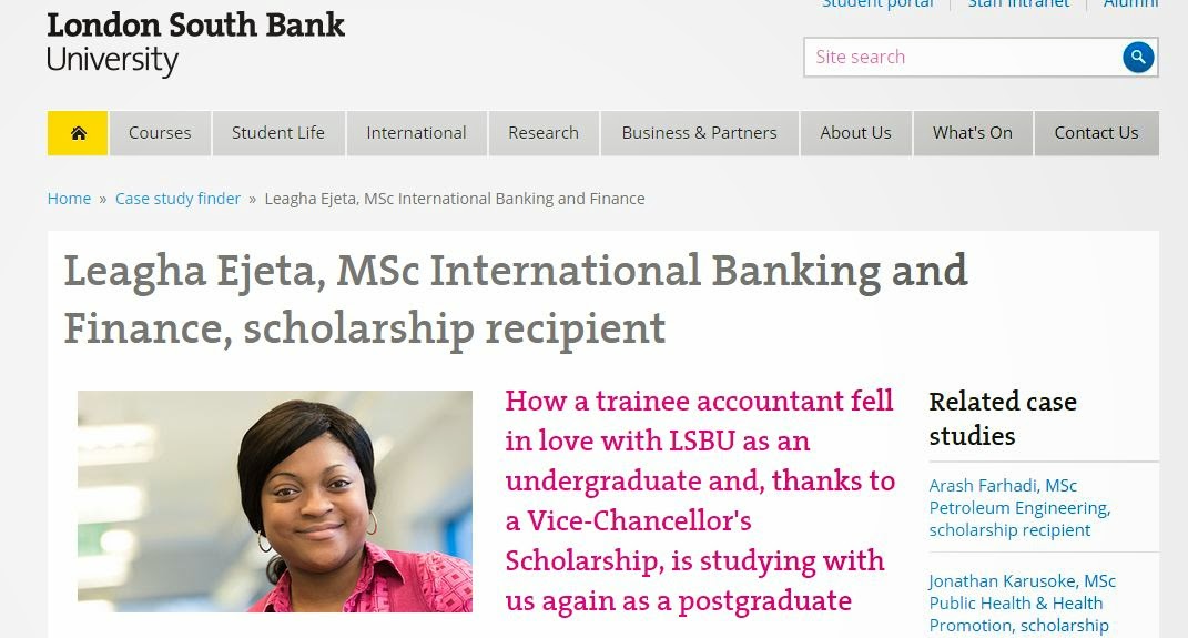 London South Bank University highlights scholarship recipient, Leagha Ejeta