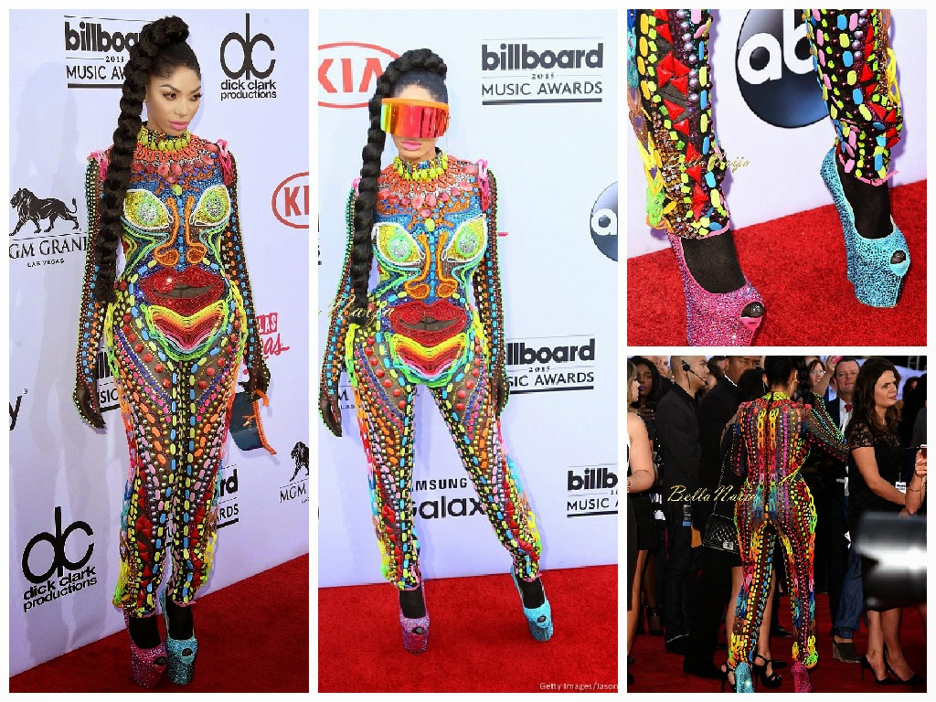 I guess her PR is at work ’cause Dencia seems to be on a roll lately..Check her out in a Candy crush jumpsuit (and Je Wanda Specs) at Billboard Awards…